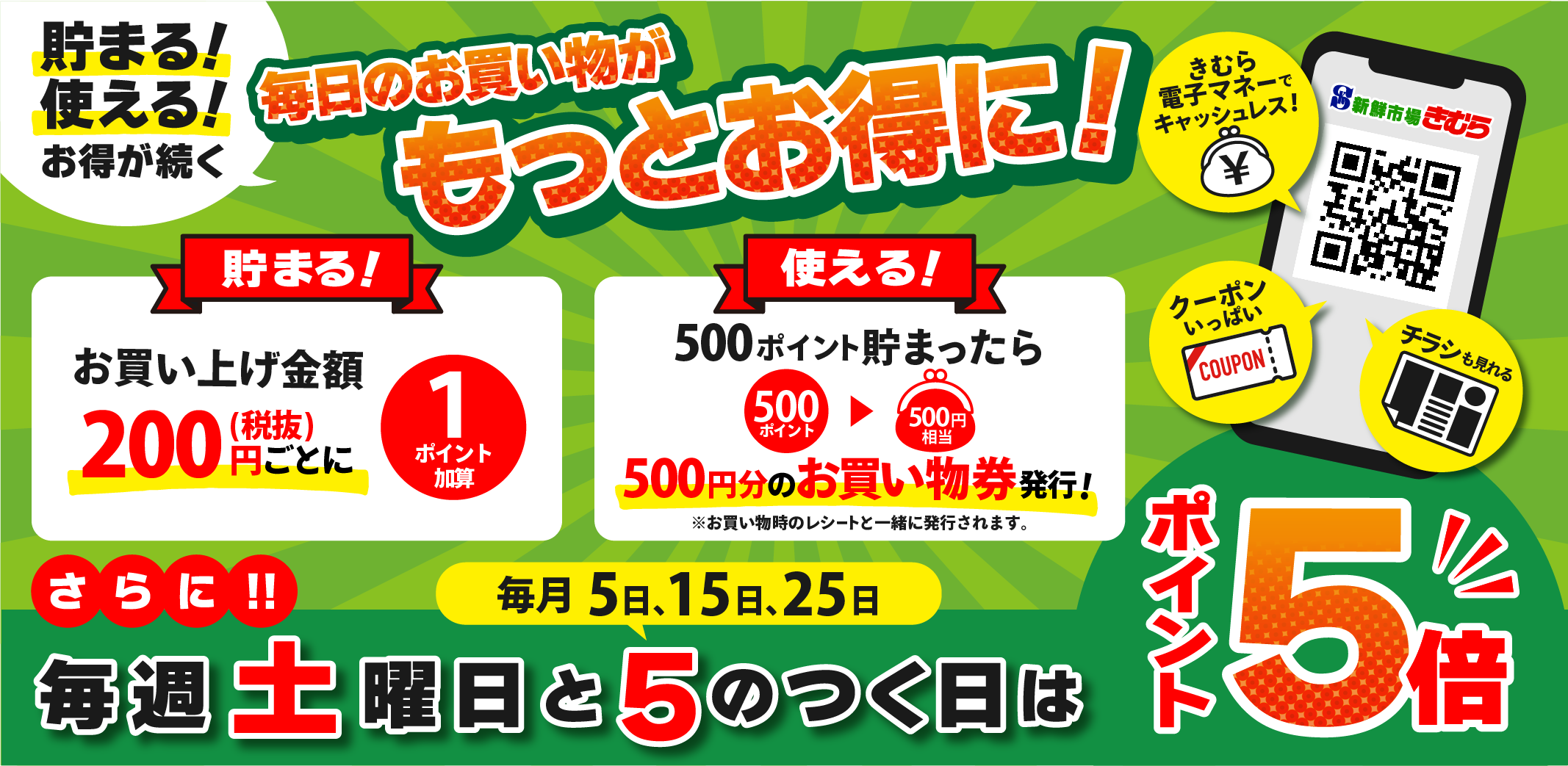 毎週土曜日と5のつく日はポイント5倍を開催♪