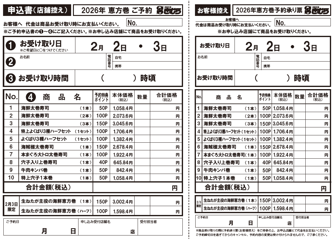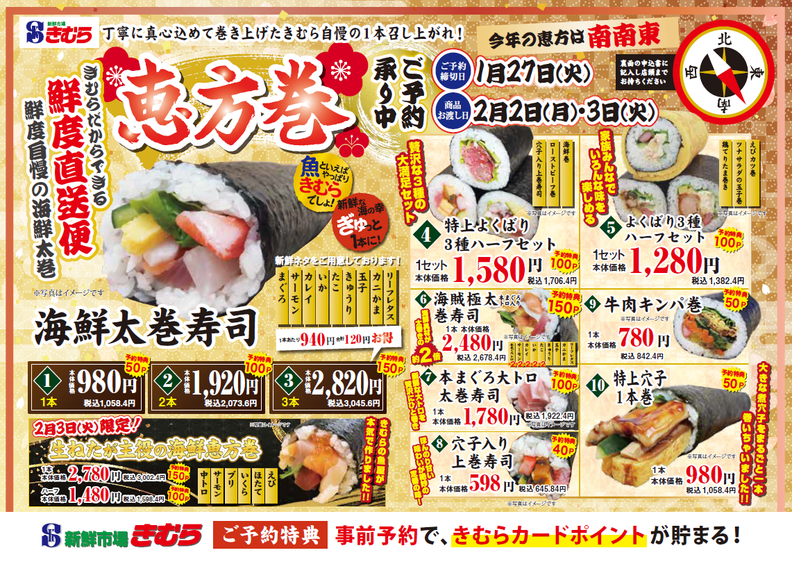 お待たせしました!きむらの恵方巻2026予約承ります♪