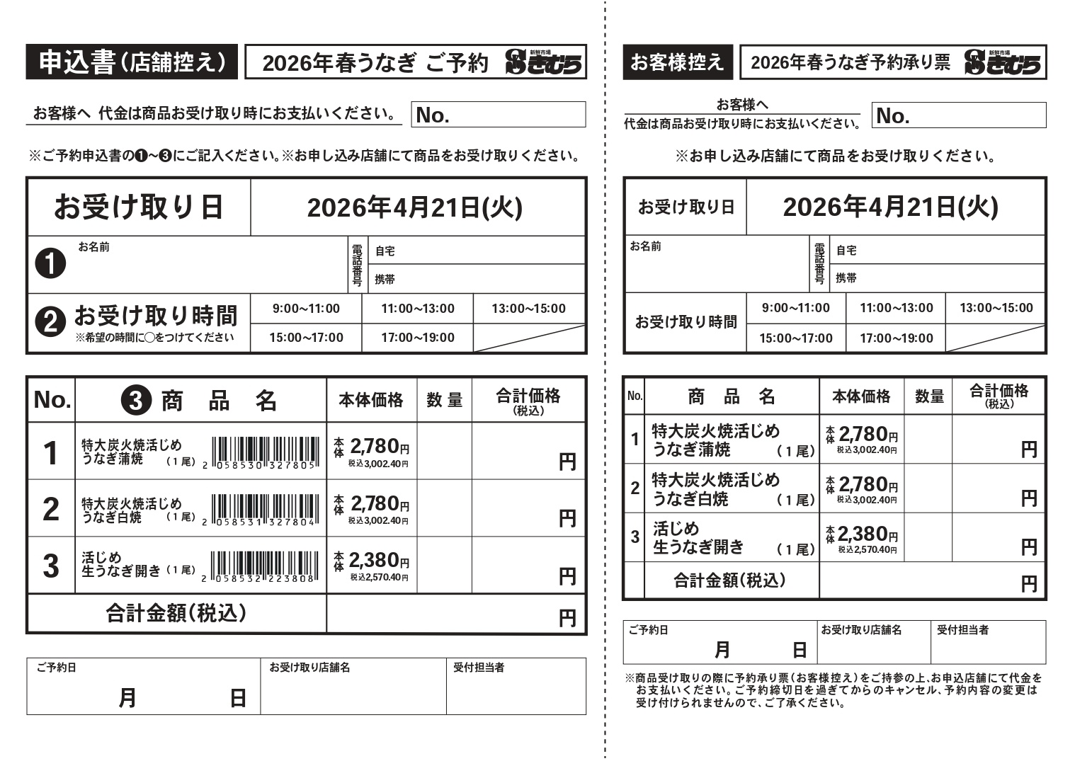 (申込用紙は店頭にてご用意しております。)