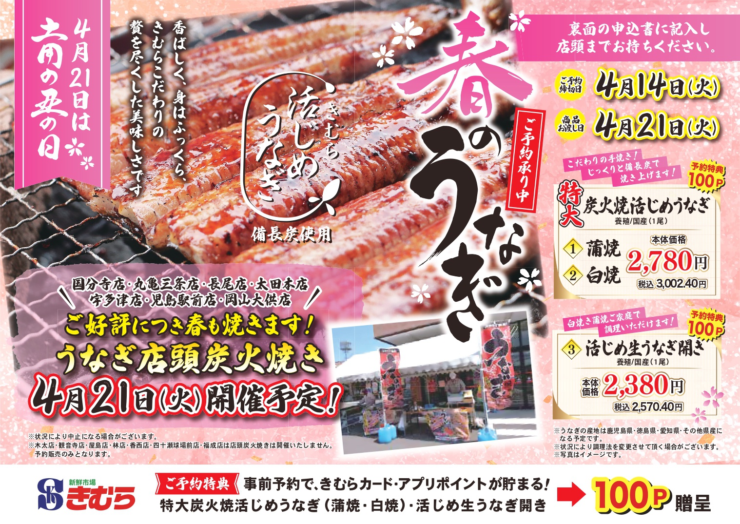 春の土用丑の日!4月21日(火)店頭炭火焼き開催予定!